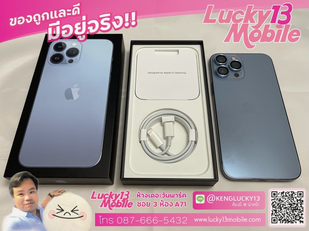 13PROMAX 256GB SIERRA BLUE สภาพมือ 1 ใหม่เอี่ยม 99.99% ประกันศูนย์เกือบ 1 ปี เพียง 43,900฿