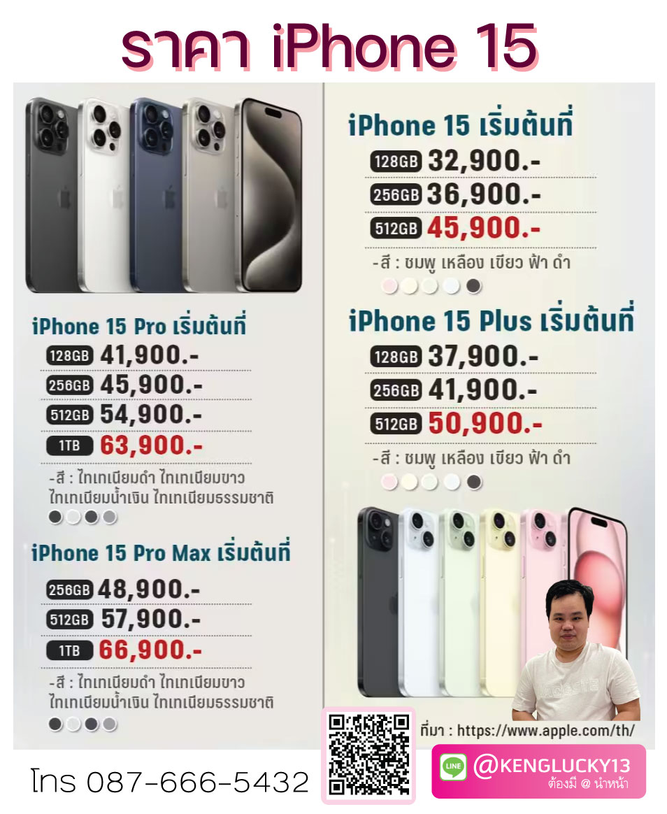 Apple เปิดตัวสมาร์ทโฟนเรือธงตัวล่าสุดอย่าง “iPhone 15” ซีรีส์ ที่มาพร้อมสมรรถนะที่ทรงพลังขึ้น แต่ก็มาพร้อมราคาที่แรงขึ้นเช่นกัน โดย iPhone 15 ตัวมาตรฐาน มีราคาเริ่มต้นที่ 32,900 บาท ที่ความจุ 128GB ส่วน iPhone 15 Pro มีราคาเริ่มต้นที่ 41,900 บาท ที่ความจุ 128GB