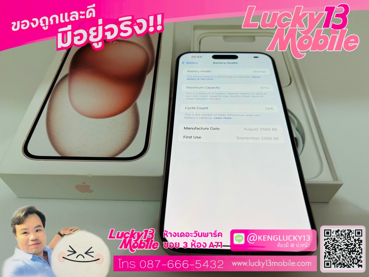 15 128GB BLUE เครื่องศูนย์ไทย มือ 1 ยังไม่ใช้งาน ใหม่ 100% ประกันศูนย์ 1 ปี ราคาสุดคุ้ม เพียง 24,900฿ (จากราคาเต็มมือ 1 32,900฿)
