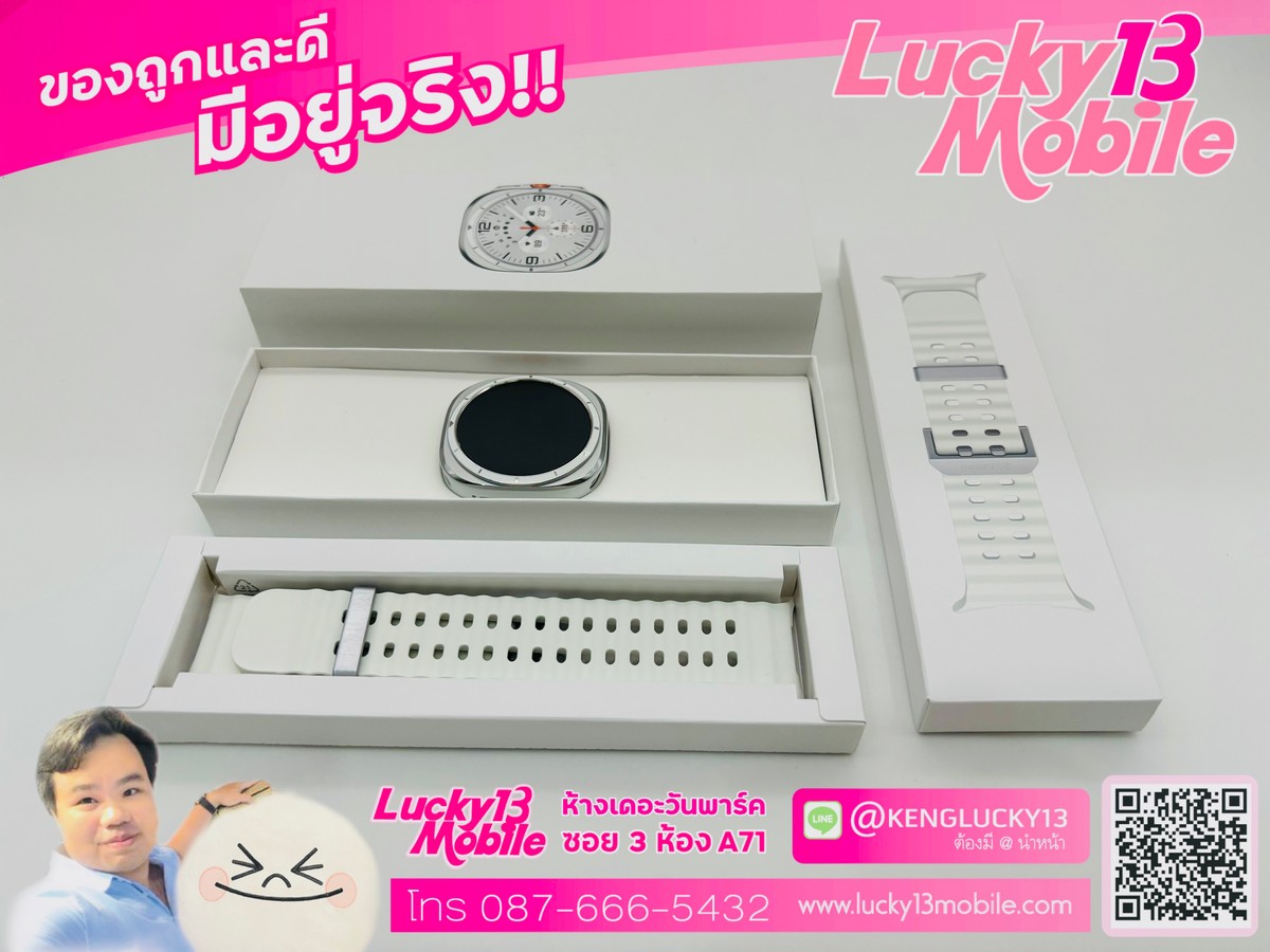 SAMSUNG GALAXY WATCH ULTRA 47MM สี Titanium White เครื่องศูนย์ไทย TH อายุ 1 อาทิตย์ อุปกรณ์แท้ครบยกกล่อง สภาพใหม่เอี่ยม 99.99% เหมือนมือ 1 ไม่มีรอยเลยครับ สวยจริง