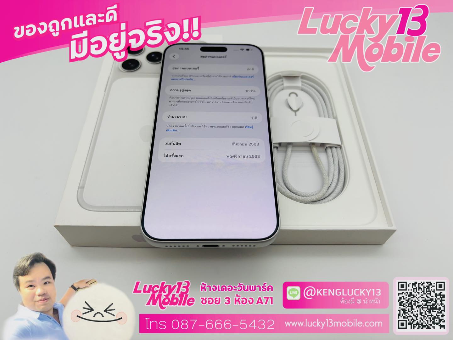 iPhone 17 Pro Max 512GB Silver ศูนย์ไทย สภาพดี 90% ครบยกกล่อง เพียง 45,900 บาท